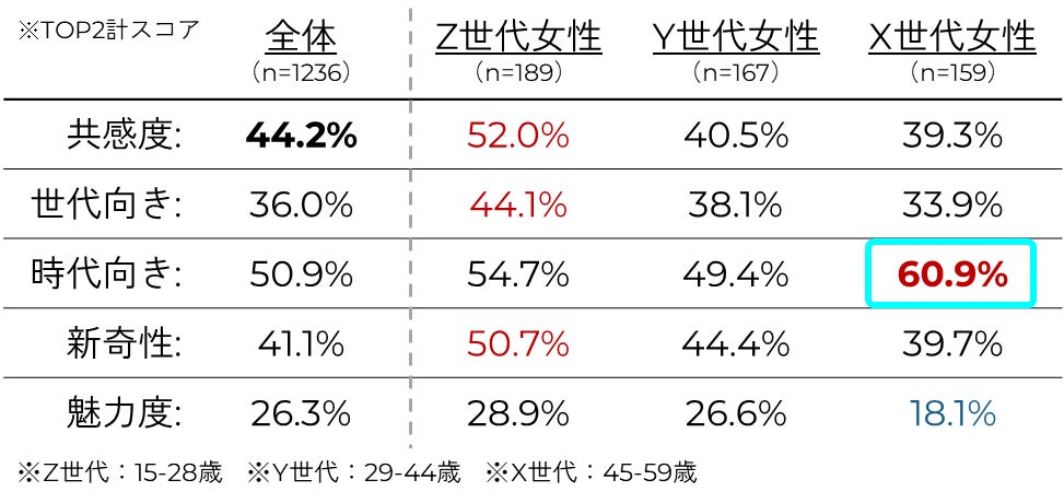 ~注目した生活者動向:災害・感染症・戦争・経済不安など、予測不能な出来事が相次ぐ中、若々しさを保ちながら健やかに長生きすることへの関心の高まり。見立ての「時代向き」の評価がX世代女性で60.9%~