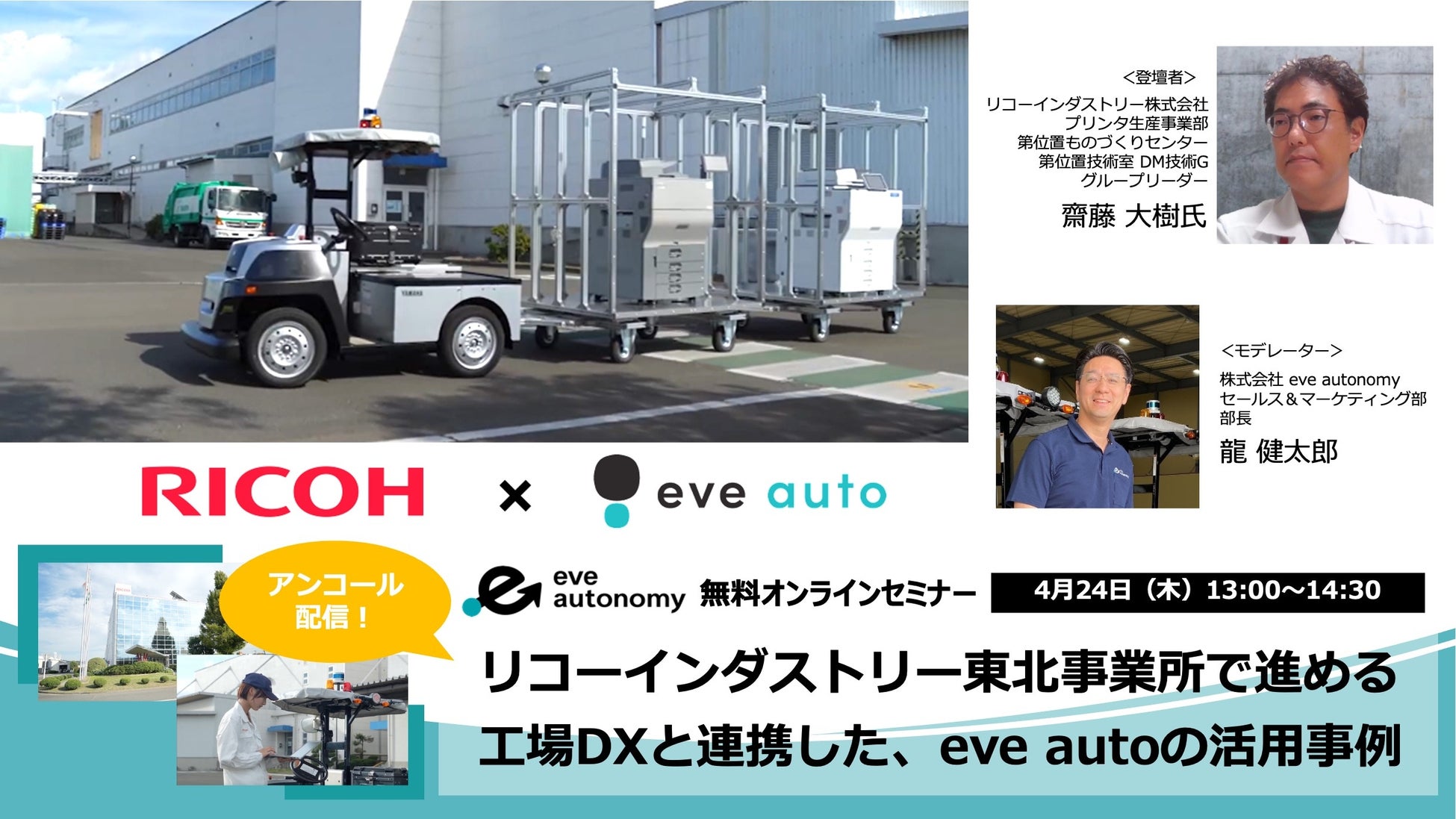 【 4月24日(木)無料オンラインセミナー 】好評につきアンコール配信!リコーインダストリー東北事業所のeve auto導入事例を再び学ぶ