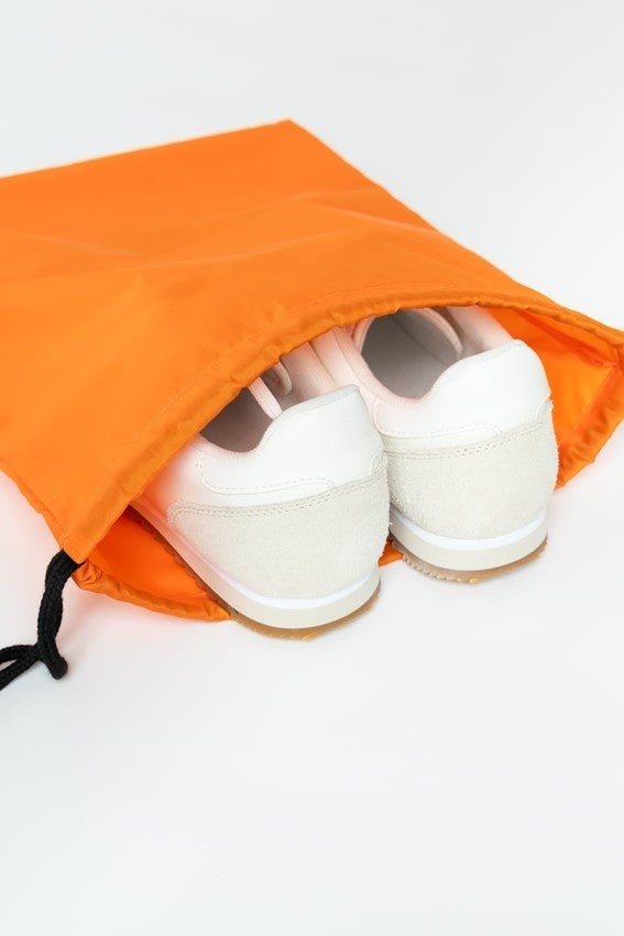軽さと耐久性を兼ね備えた、巾着タイプのシューズバッグです。丈夫なポリエステル生地を使用し、サイズの大きなスニーカーもしっかり収納可能。靴の持ち運びはもちろん、着替えや小物入れとしても便利にお使いいただけます。