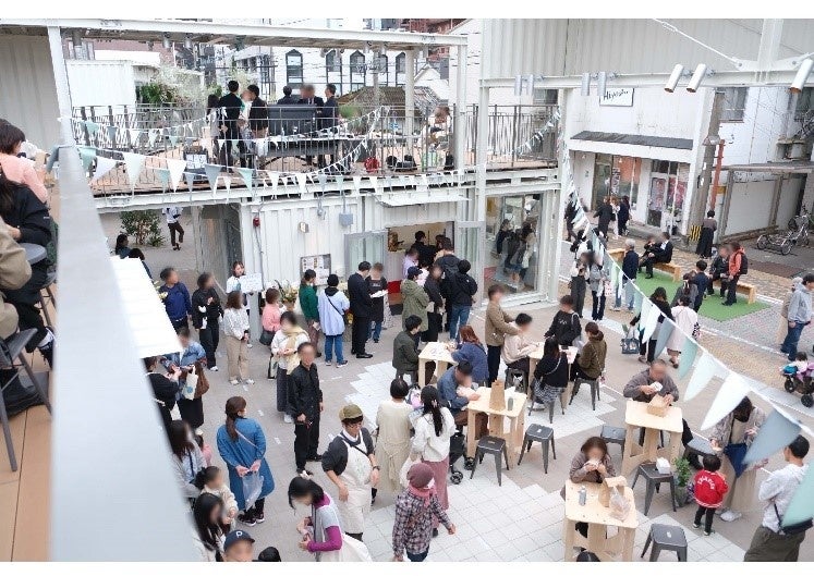 周辺商店街の景観に合わせ、建築用コンテナを用いて小規模店舗を集積させた商業施設です。賑わいを創出するイベントスペースや滞留可能な共用テラスを設けています。