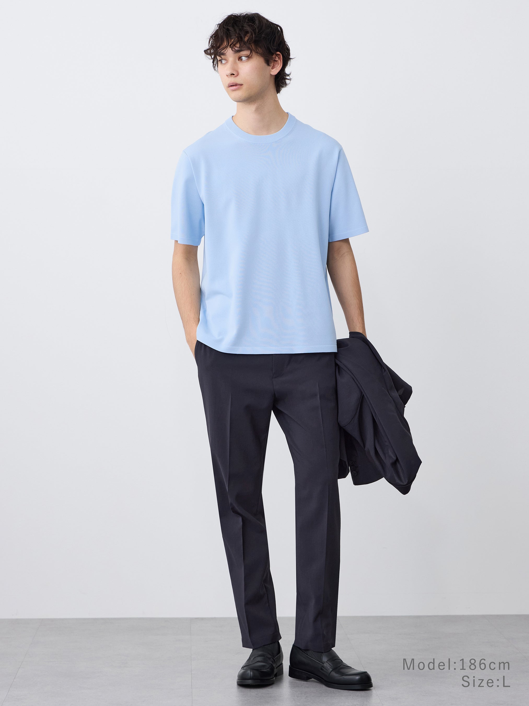 Tシャツの気軽さと、ニットならではの上品さを兼ね備えた一枚。インナーとしても使いやすいバランスに。