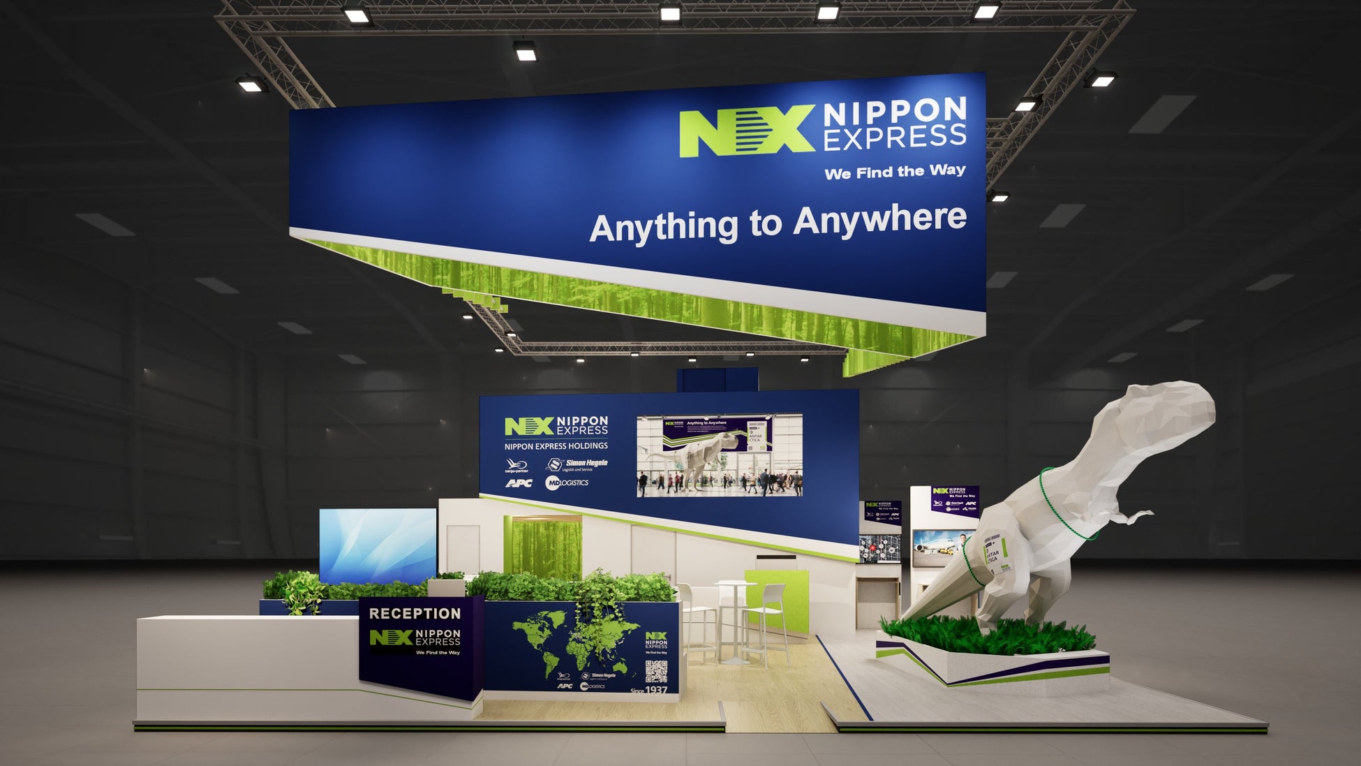 ブースはNXグループの強みを示すキービジュアル「Anything to Anywhere」をコンセプトとしています。また、キービジュアルに登場する恐竜のモチーフも展示します。