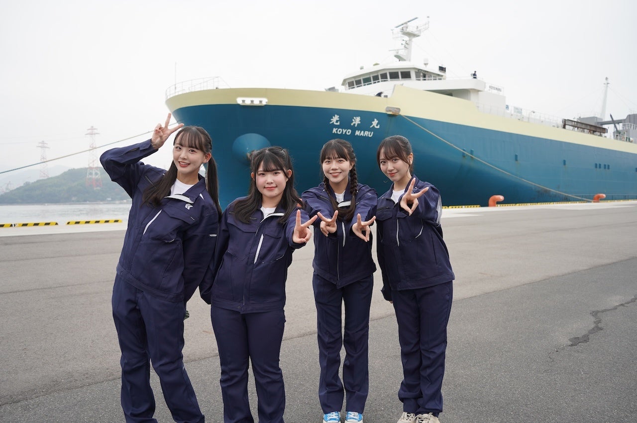 瀬戸内 7 県を拠点とするアイドルグループ STU48 と日本内航海運組合総連合会がコラボ企画を実施し、広島港に停泊する内航貨物船の中で“内航海運”の生活と仕事を体験しました。国内の港から港へ物資を運ぶ内航海運事業者と、その総合調整機関である日本内航海運組合総連合会は、10~20 代の若者に船員という職業の魅力を伝え、志望者を増やすことを目的に、YouTube チャンネル「ナイコ~海運 CH」を運営しています。同チャンネルでは、船員でなければ目にすることができない貴重な映像や、意外と知られていない船に関する情報を発信。従来の職業紹介では堅苦しくなりがちな業界の魅力を、より多くの人々に届けるため、STU48 とのコラボ企画を実施しました。アイドルが発信することで、内航海運業や船員の魅力をより身近に感じてもらうことを目指しています。 実際に貨物船に乗るのは初めてだという池田裕楽、石田千穂、工藤理子、福田朱里の 4 名が、総トン数 4,238 トン、全長 124.70m、型幅 20.50m の内航貨物船「光洋丸」に乗船!!普段はマツダの宇品工場で製造された新車を中部地方や関東地方まで、自動車 600 台を運ぶことのできる自動車専用船。4 人は船の見た目の大きさに圧倒され、船内でも驚きの連発でした。YouTube、TikTok 内では『船に就職したら先輩がアイドルだった件』と題し、航海士の石田が新人船員であるキミを起こすところから始まり、4 人による寸劇?コント?芝居?で楽しく分かりやすく船での仕事が解説されており没入感の高い作品に仕上がっています。内航海運は、国内貨物輸送においてトラックの 55.5%に 次いで 39.8%のシェアを占め、国民生活を支える重要な役割を担っています。しかしながら、トラックや鉄道輸送に比べ認知度が低く、船員の不足や高齢化(船員の約半数が 50 歳以上)といった問題を抱えており、これらの解決が喫緊の課題となっています。そのため、内航総連で は、内航海運業や船員という職業の認知向上と興味喚起を図り、就職先の選択肢として内航海運を提案する取り組みが求められています。STU48 はアイドルという立場で、今回のコラボ動画を通じて、内航船という職業を知るきっかけを提供し、その魅力を広めていきます。 是非、ご視聴ください。公開は本日、3/25(火)18:00〜 下記チャンネルで随時アップされます。