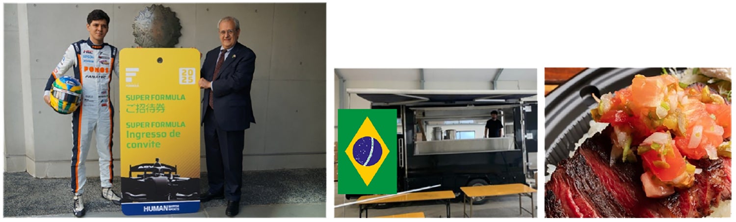 ・イゴール・オオムラ・フラガ選⼿/ブラジル/ビストロカルロス/ブラジリアンBBQ(ビーフ串)、他