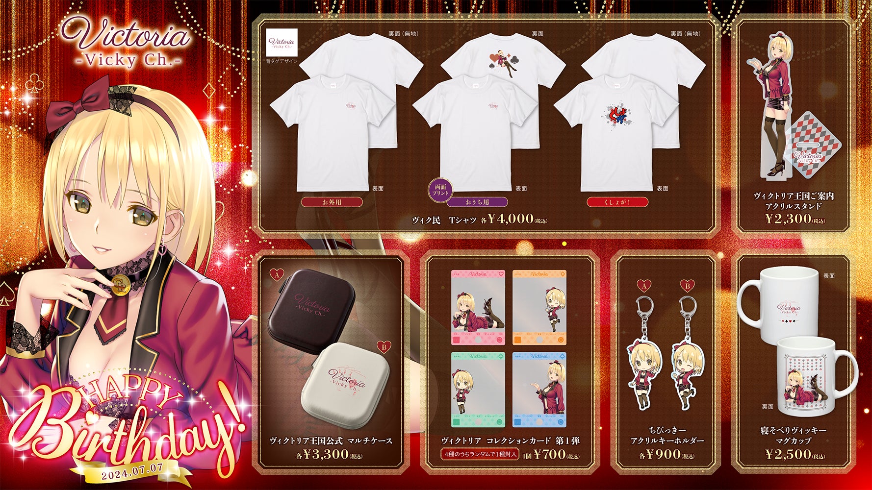 ゲーム実況や手料理配信で人気を博すVTuber『ヴィクトリア』さんのオフィシャルオンラインストア『Victoria 公式グッズショップ』が7月7日にオープンいたしました!