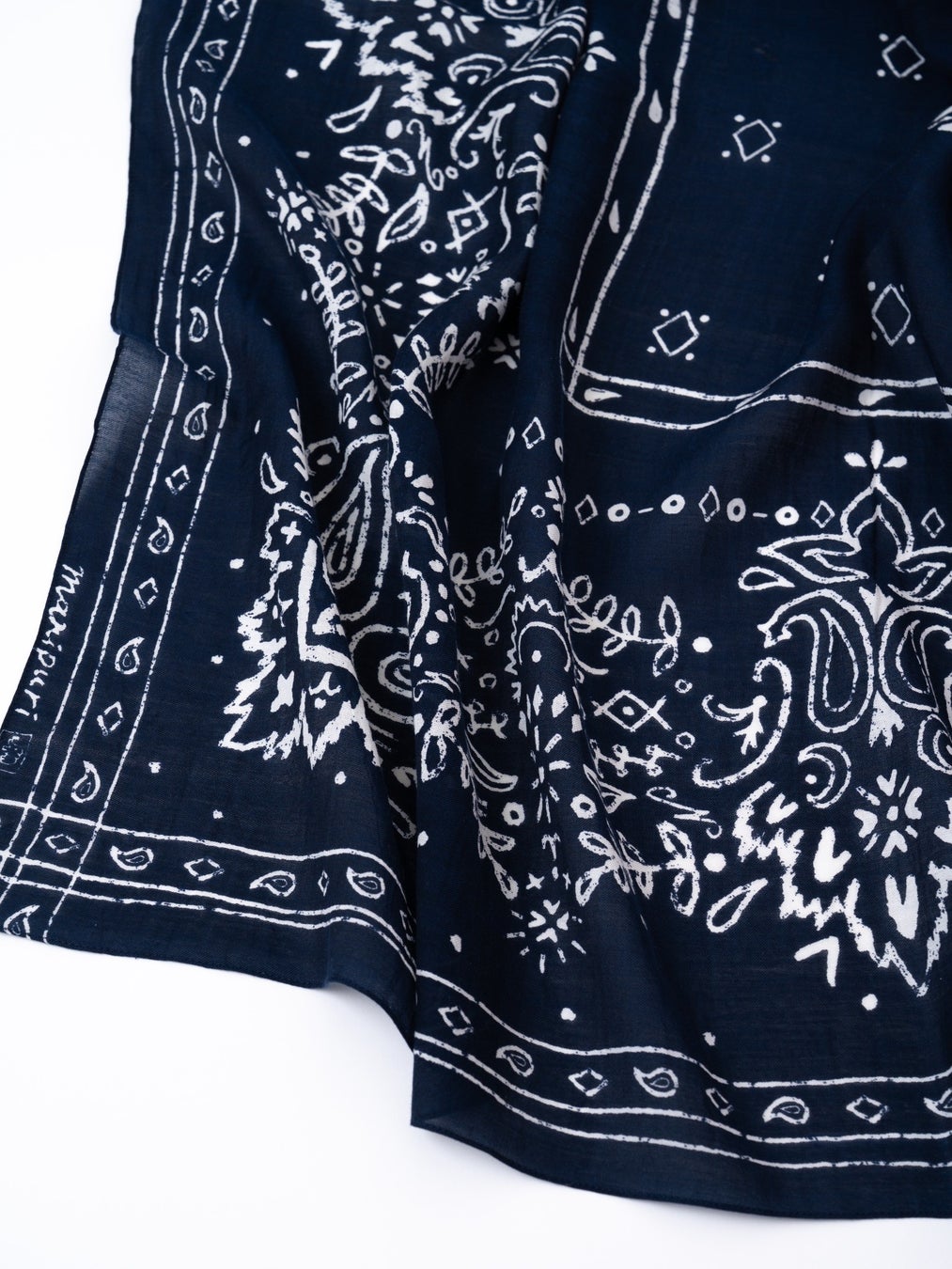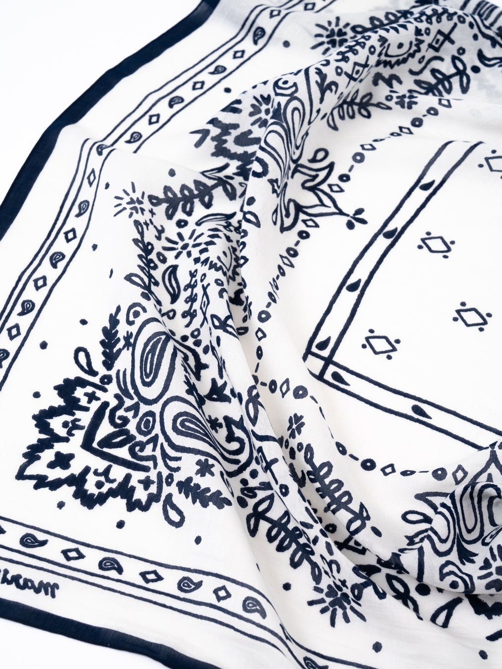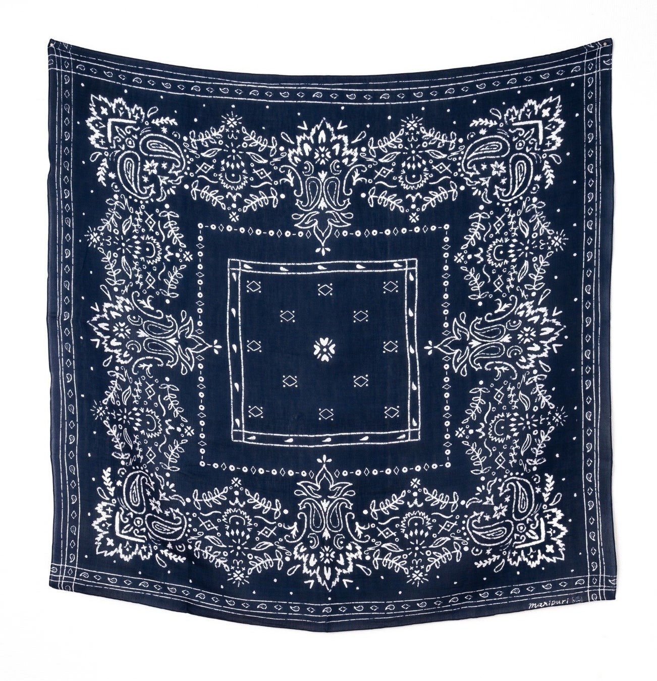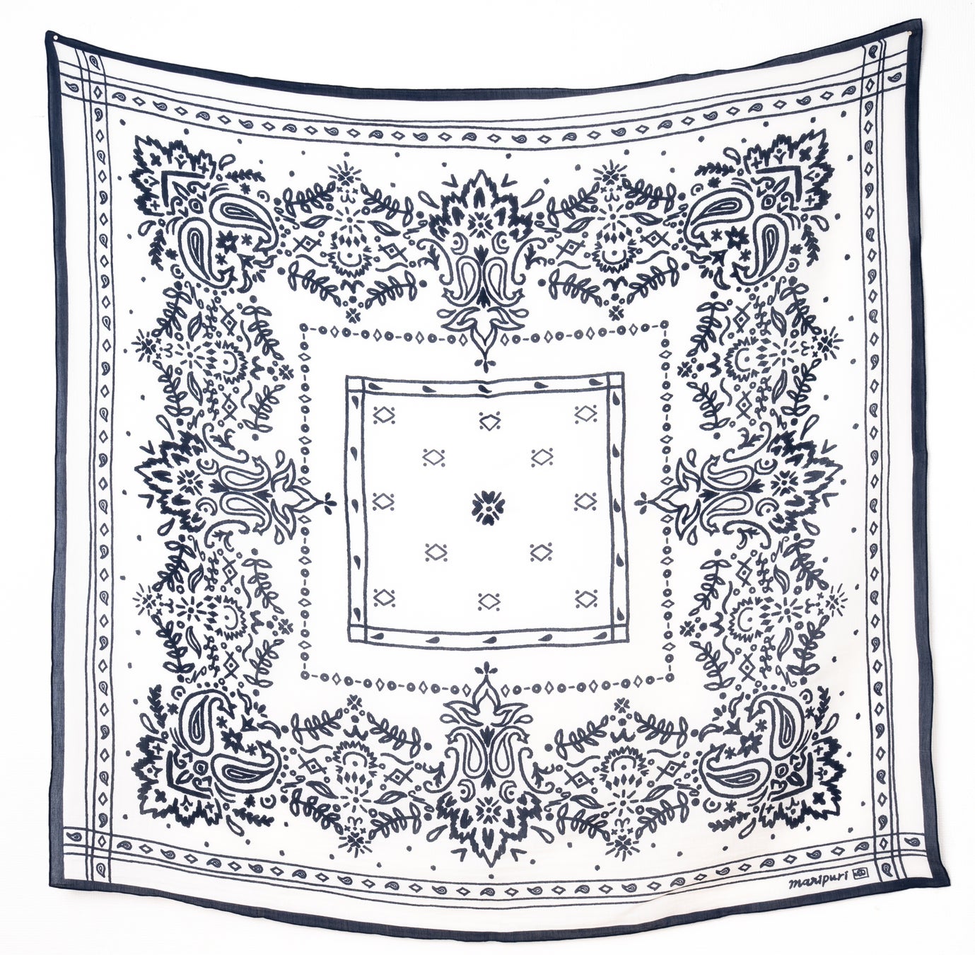 右【マニプリ】<コットンシルクストール120>メドウバンダナ <ホワイト×ダークネイビー>