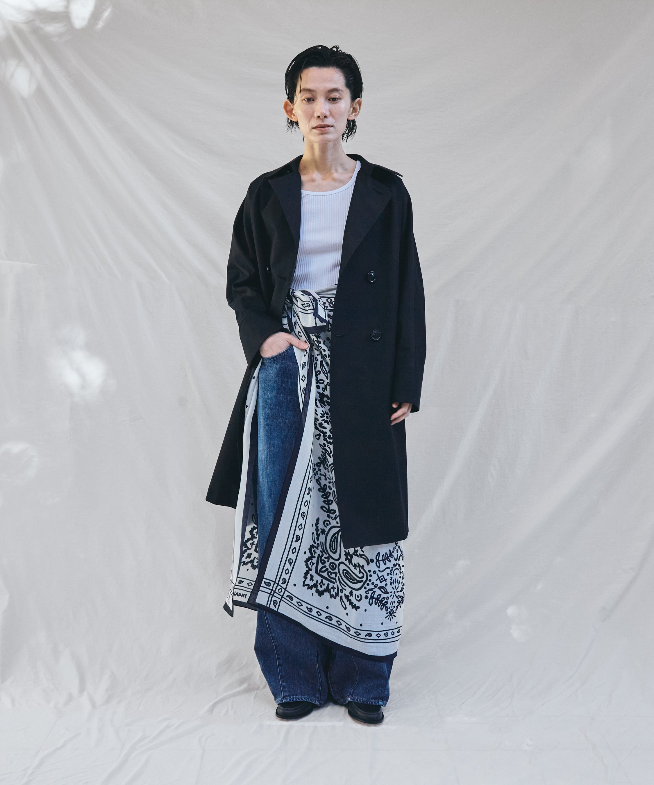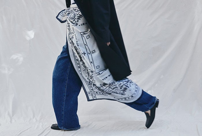 アッシュプラスエリオトロープ(H+HELIOTROPE)は、マニプリの<コットンシルクストール120>メドウバンダナの限定色を展開いたします。本アイテムはアッシュプラスエリオトロープの色別注で、<ダークネイビー×ホワイト><ホワイト×ダークネイビー>の2色をご用意いたしました。