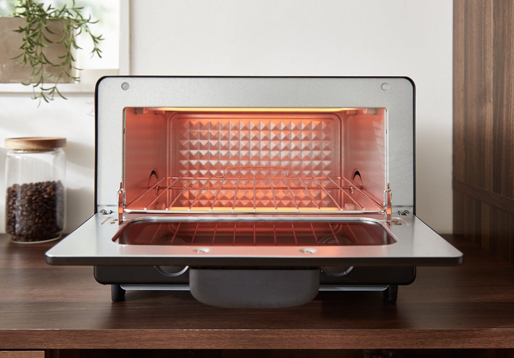 上下に配置された遠赤外線ヒーターにより、ムラなくしっかりと焼き上げます。サーモスタット機能搭載で過熱を防止し、安全に調理できます。