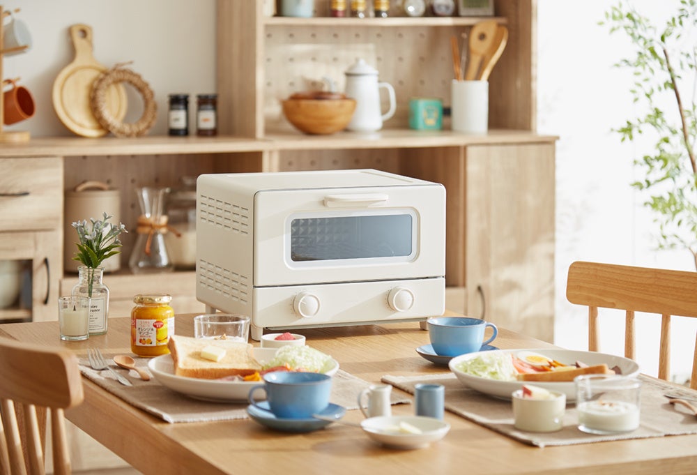 本製品は、毎日のトーストやピザ、グラタンなど幅広い調理シーンで活躍するだけでなく、こだわりのデザインと使いやすさで、キッチンをおしゃれに彩ります。コンパクトで置きやすいサイズ感と簡単な操作性で、忙しい朝の時短調理から家族みんなの食卓づくりまで、さまざまなニーズにお応えします。