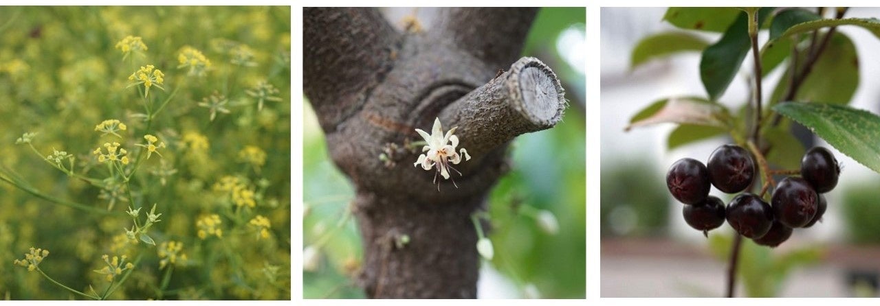 (写真左から)ミシマサイコ、カカオ、アロニア