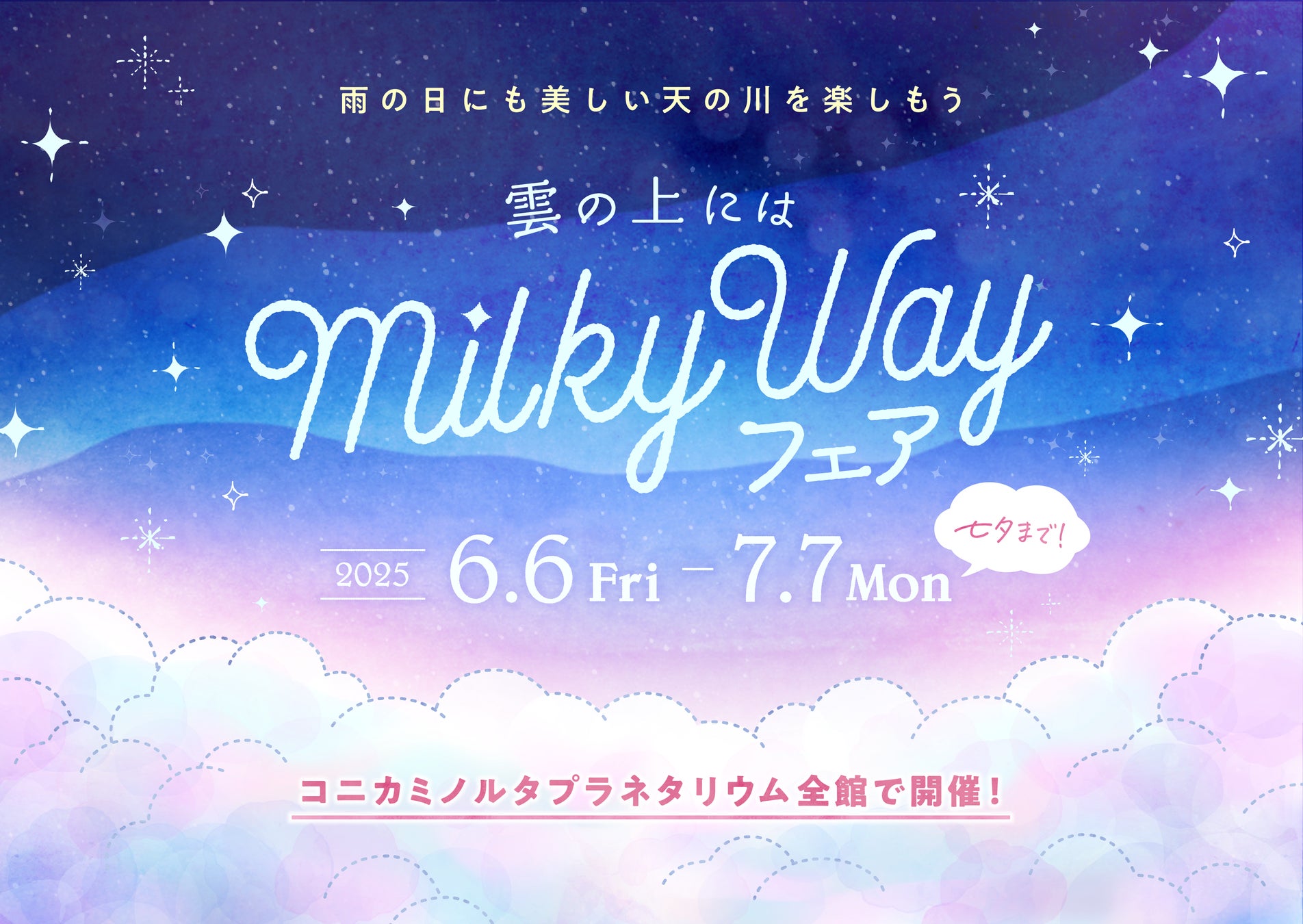 プラネタリアYOKOHAMAでは、2025年7月7日(月)の七夕まで、雨の日にも天の川を楽しめる特別フェア『雲の上にはミルキーウェイ』を開催中です。