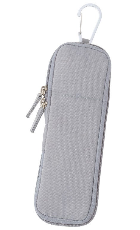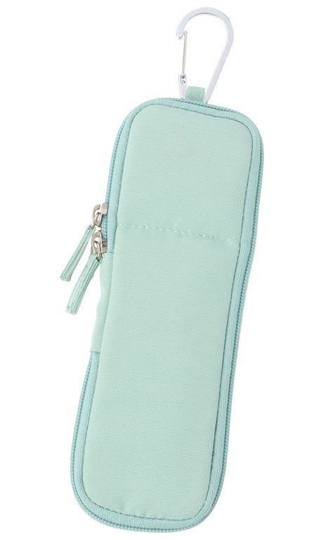 さらに背面には外ポケットが付いており、使用頻度の高いアイテムをファスナーを開けずにさっと取り出せます。また、カラビナ付きなので、バッグに取り付けたり、フックに掛けて使うことも可能です。