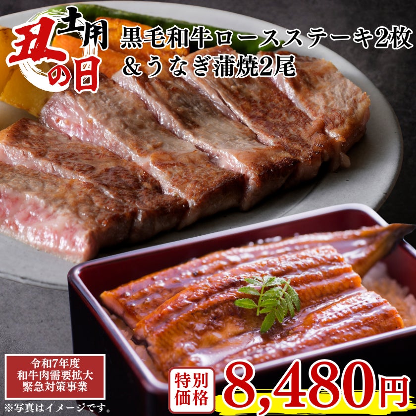 【畜産農家応援】宮崎県産和牛ロースステーキ2枚500g+うなぎ2尾