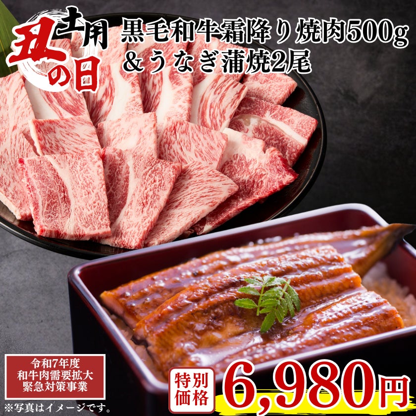 【畜産農家応援】宮崎県産和牛霜降り焼肉500g+うなぎ2尾