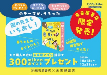 株式会社未来屋書店(千葉県千葉市、代表取締役社長:平川雅隆)は、株式会社福音館書店(東京都文京区、代表取締役社長:佐藤潤一)との初の共同出版企画として、オリジナル絵本セット『赤ちゃんに贈るえほん3冊セット』を2025年10月18日(土)より、未来屋書店全店舗および公式オンラインストア(https://store.miraiyashoten.co.jp/)にて限定発売いたします。