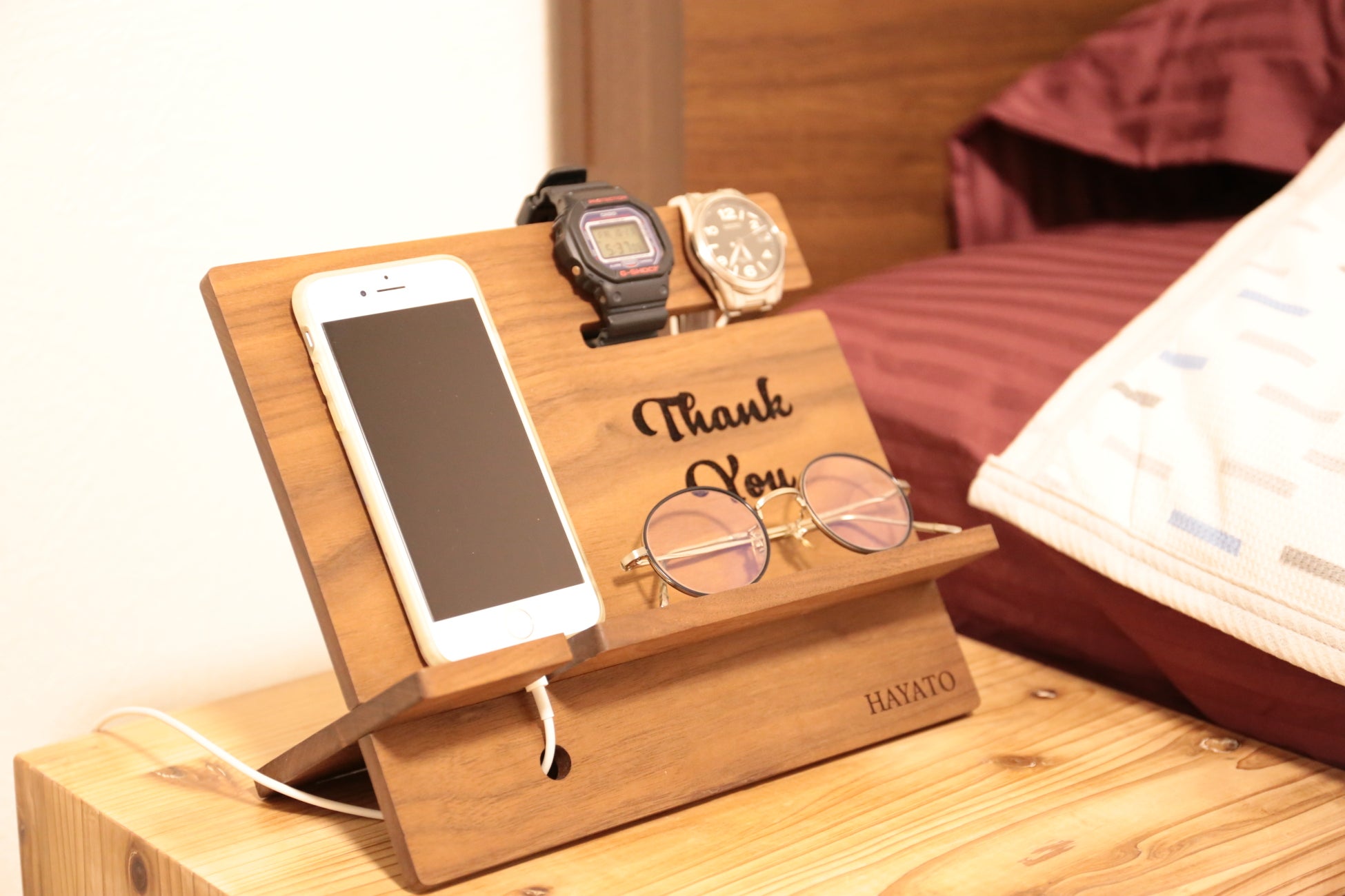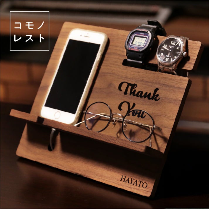 【ココロを贈る 名入れギフトOkulu】スマホ・メガネ・腕時計を美しく収納。散らかりがちな毎日を“ひとまとめ”にする木製スタンド『コモノレスト』が登場