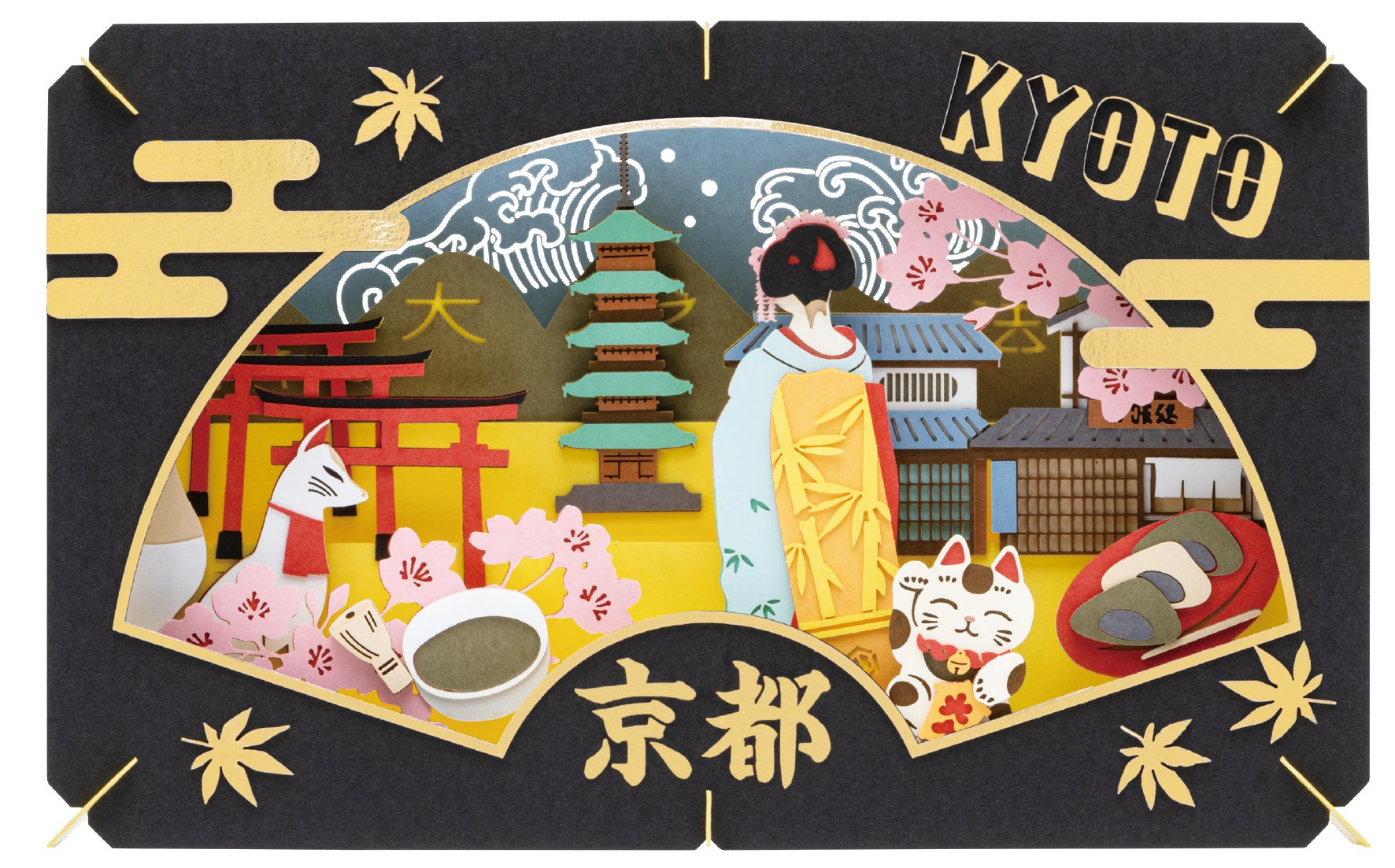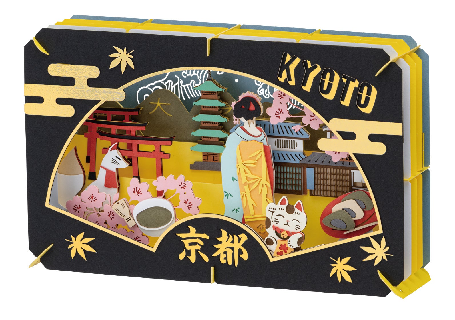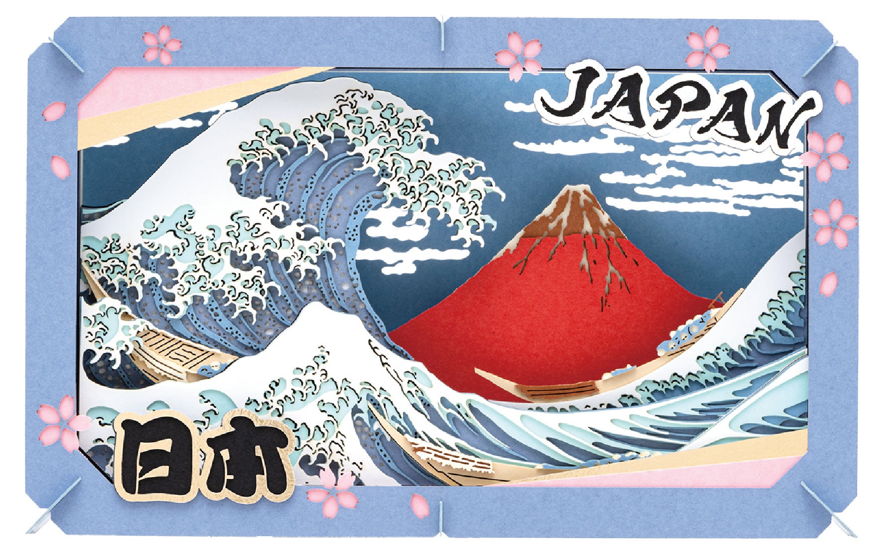 「PAPER THEATER」シリーズに、葛飾北斎の名画をモチーフにしたダイナミックなデザインと、古都・京都の落ち着きと華やぎを表現した2種類の新作が登場します。「ペーパーシアター PT-L103 北斎」では、世界的に有名な葛飾北斎『神奈川沖浪裏』の迫力ある波と、『凱風快晴』の赤富士を大胆に組み合わせ、緻密なレーザーカットで立体的に表現。名画の躍動感と華やかな赤富士の景色を同時に楽しめます。「ペーパーシアター PT-L104 京都」では、歴史と情緒あふれる京都の街並みを、ペーパーシアターならではの奥行き構造で表現。落ち着いた色合いの紙に金色の紙を組み合わせ、和の上品さと華やかさを併せ持つデザインに仕上げています。素敵な日本の情景をお家でお楽しみいただくのはもちろん、お土産やプレゼントにもぴったりです。是非手に取ってお楽しみください。