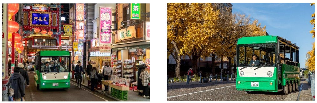 「関内マーロ」はBASEGATE横浜関内を起点に、横浜関内に精通したガイドと周辺の街を楽しめる、グリーンスローモビリティ(※)です。横浜中華街、赤レンガ倉庫、馬車道、野毛など、窓の無いオープンバスで、横浜を街のにおいとともにお楽しみいただけます。