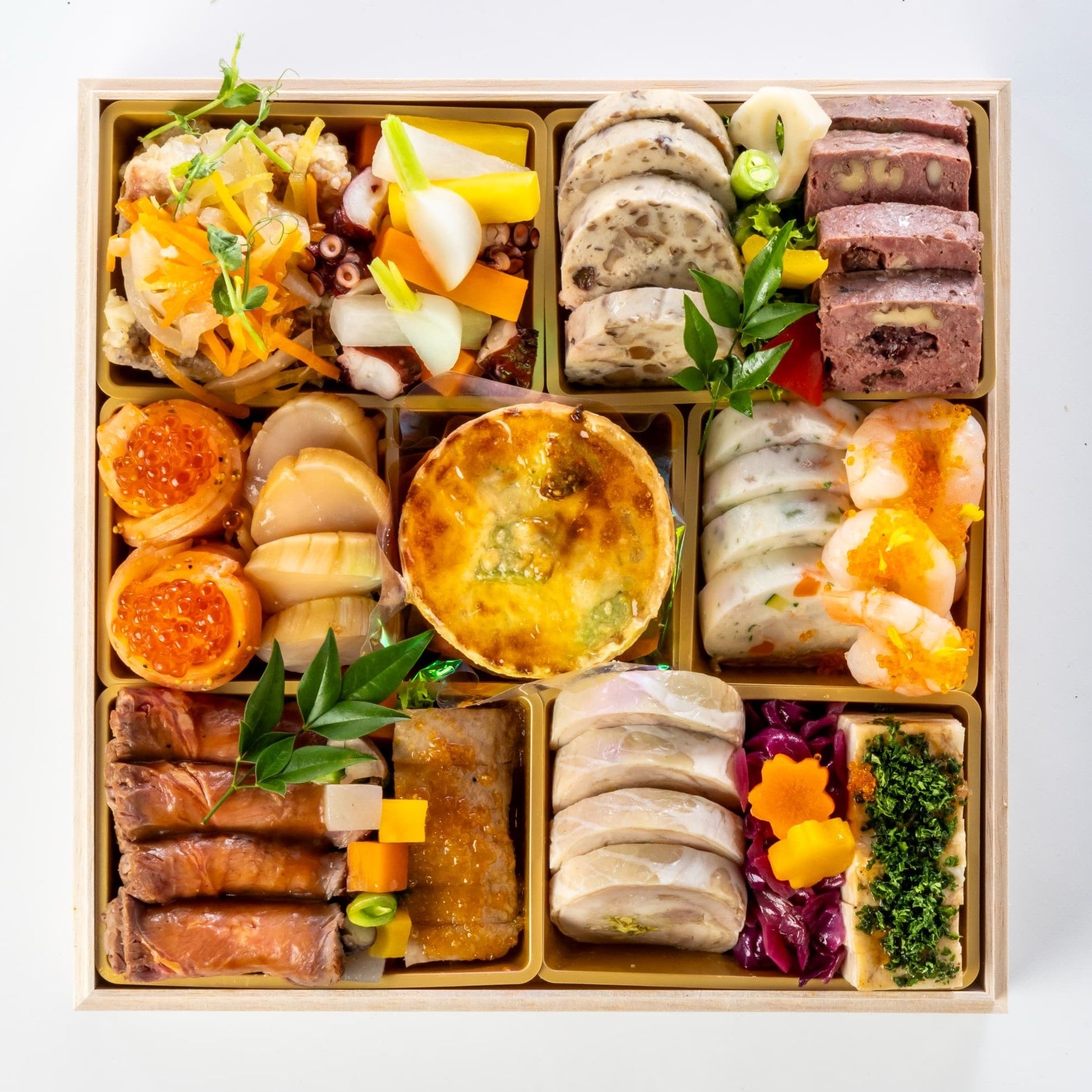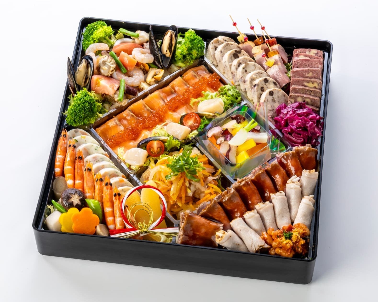 昨年、即完売した「洋食おせち風プレミアムオードブル」は選りすぐりの食材をホテルシェフの技で多彩に仕立てた洋食づくしのおせち風オードブル。香り立つトリュフソースやスパイスの余韻、そしてもとぶ牛や真鯛のエスカベッシュをはじめとした、極上の逸品は大人の新年にふさわしい至福のオードブルです。