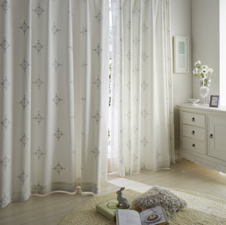 ■特徴: 全面にほのかにキラリと光る刺繍が入ったデザインカーテン。淡い色がフェミニン・ガーリーなお部屋にぴったり。