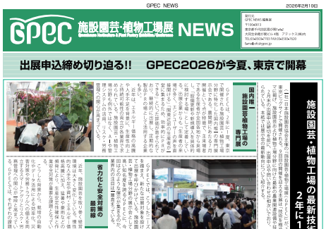 (一社)日本施設園芸協会は、2026年7月15日(水)~17日(金)の3日間、東京ビッグサイト 南1・2ホールにて「施設園芸・植物工場展2026(GPEC)」を開催します。【出展申込受付:3月末まで】