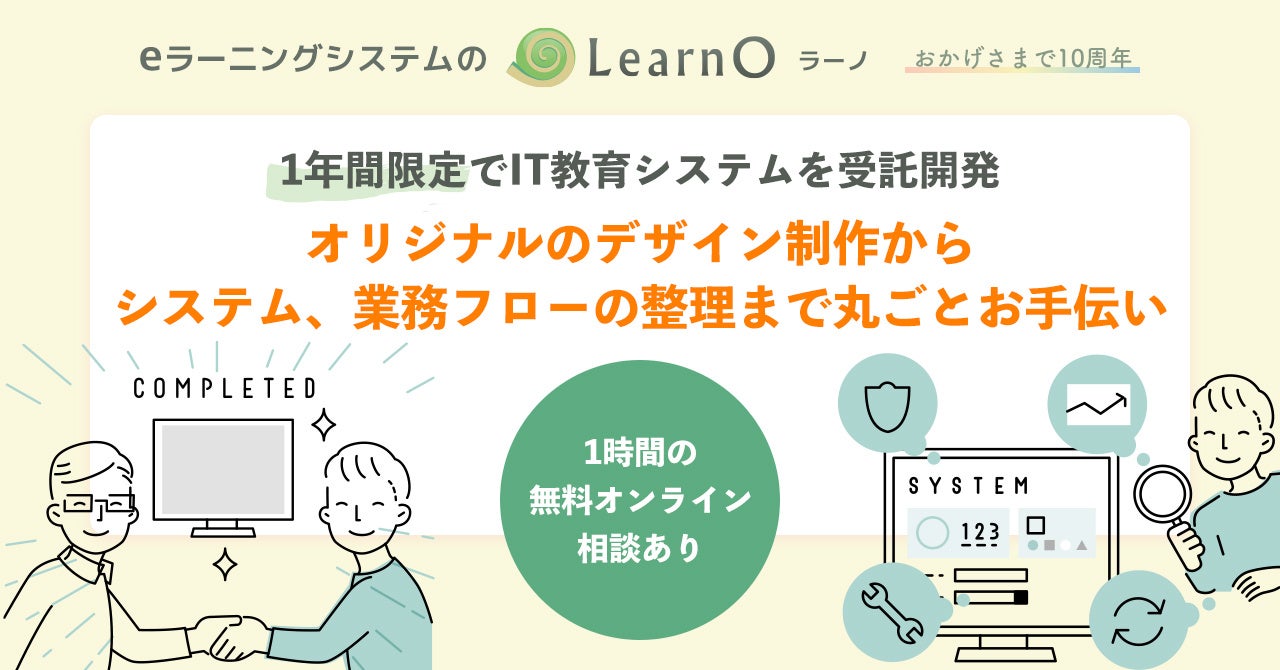 eラーニング システム LearnO 10周年記念 10年分のノウハウでオリジナルのIT教育システム開発を受託