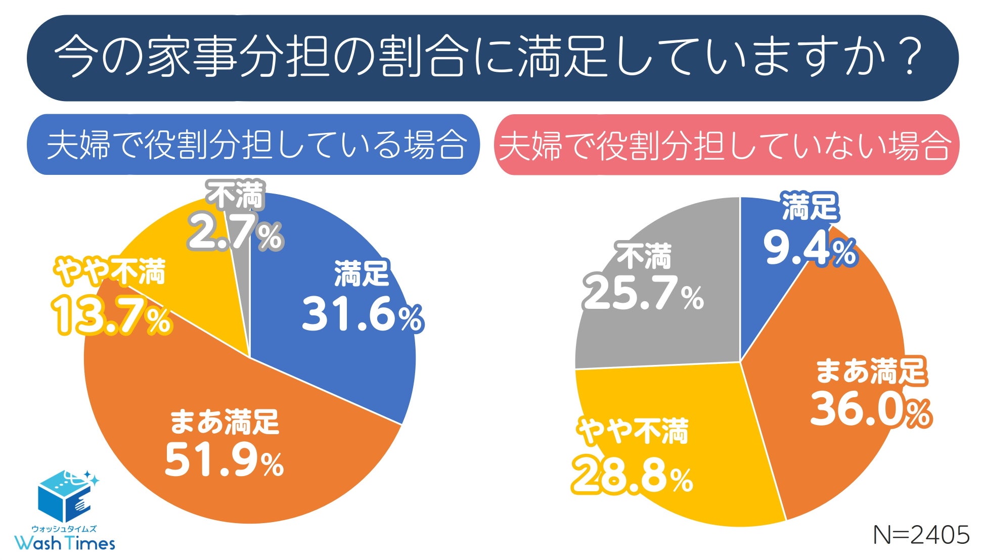 一方で、役割分担をしていない場合、家事分担に不満を感じている人の方が多い結果も出ています。