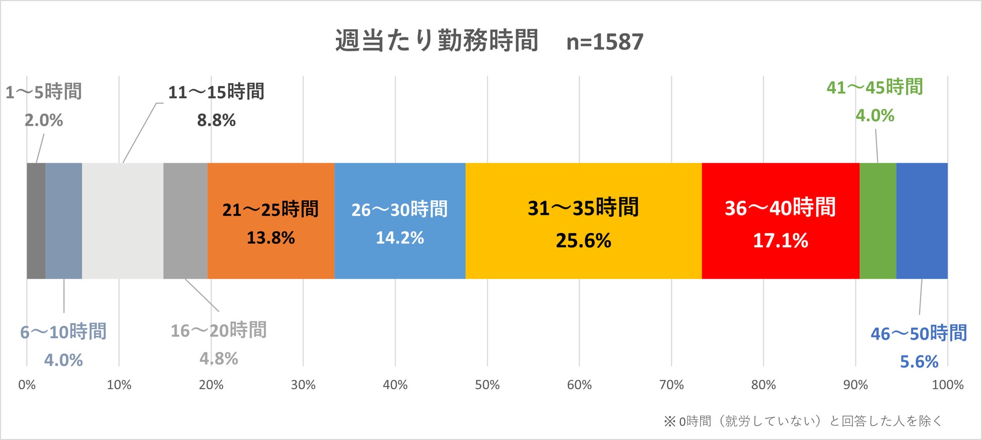 【労働時間】 ー 週の労働時間は様々で、4人に1人は31~35時間 ー