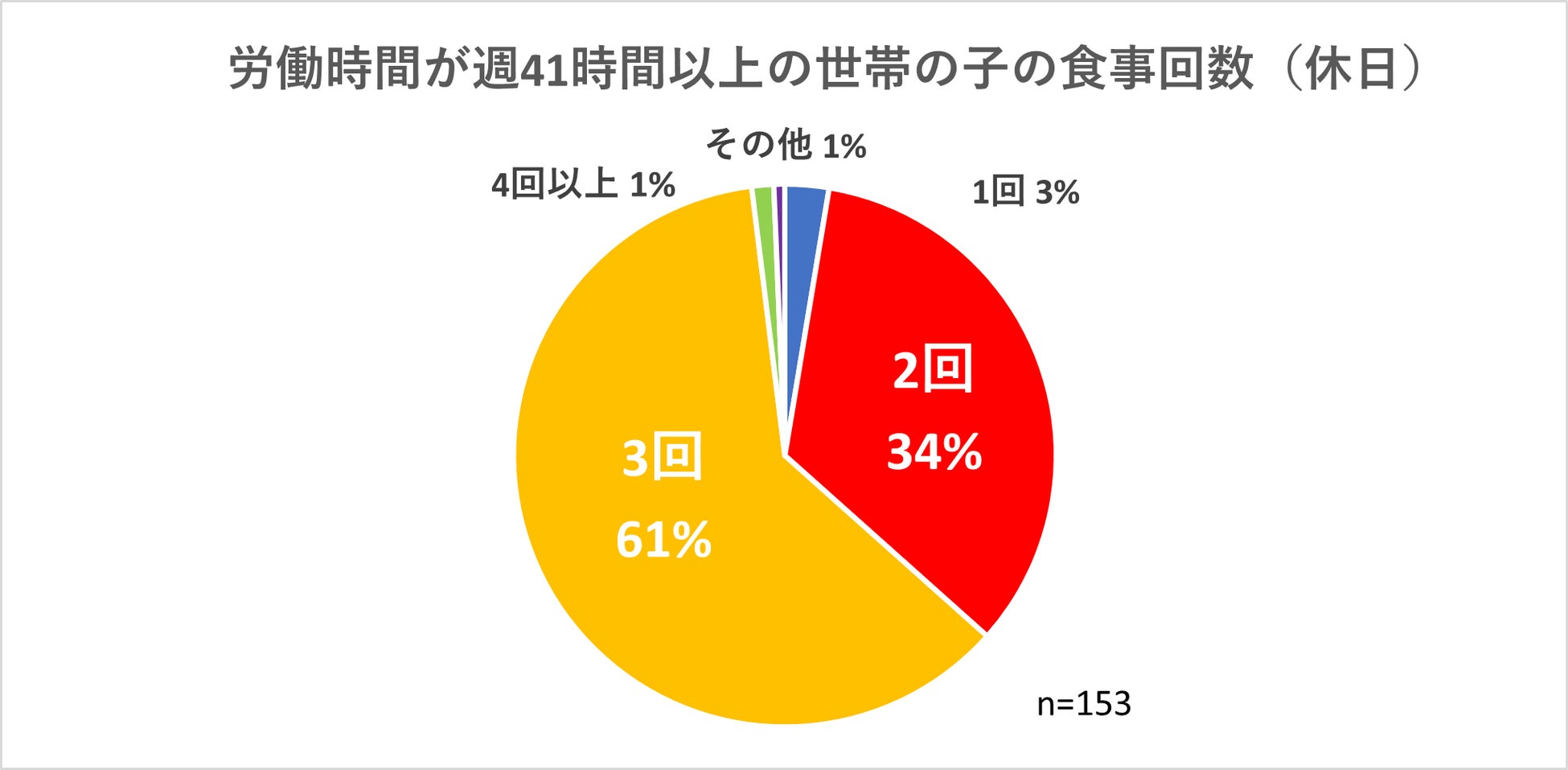 次のグラフは、労働時間が41時間以上の世帯グループにおける、子どもの休日の食事回数です。