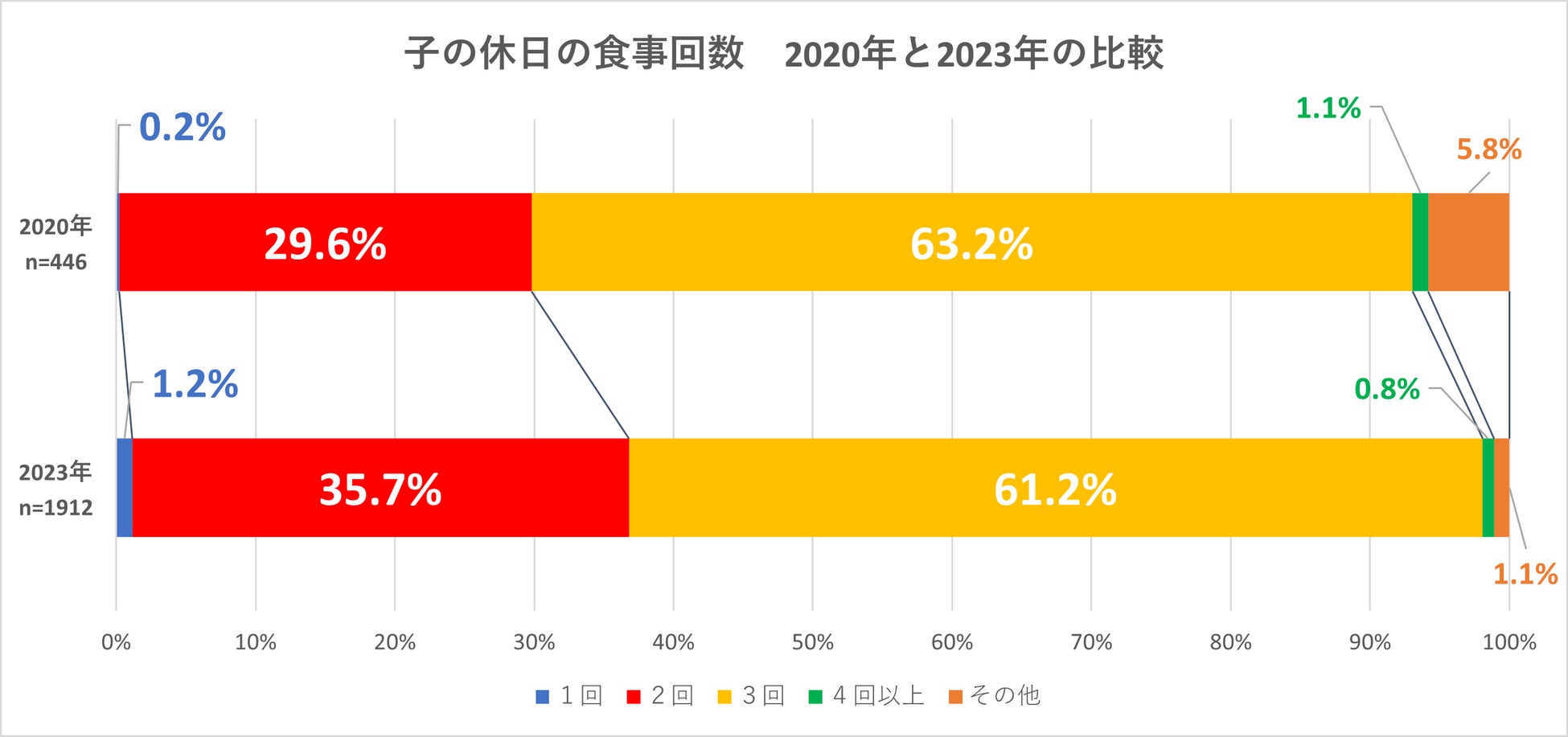 また、およそ1年半前の2020年9月に実施した、同じ調査より「子の休日の食事回数の結果」と比較してみました。