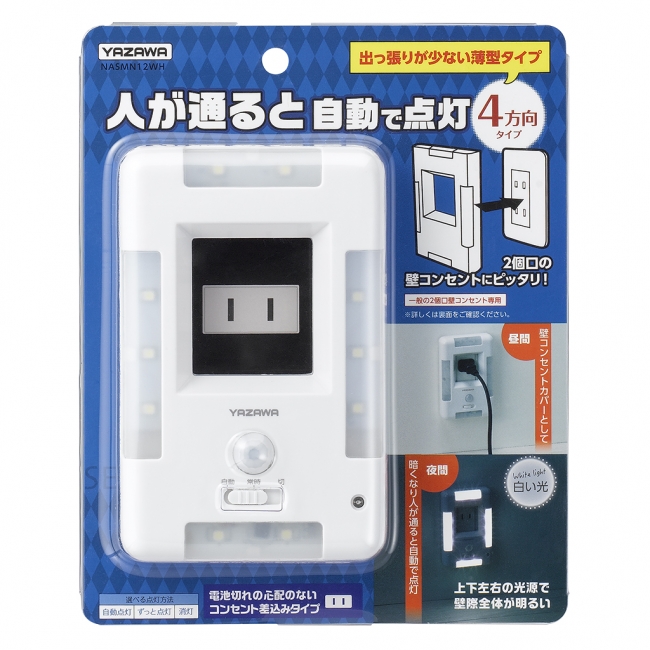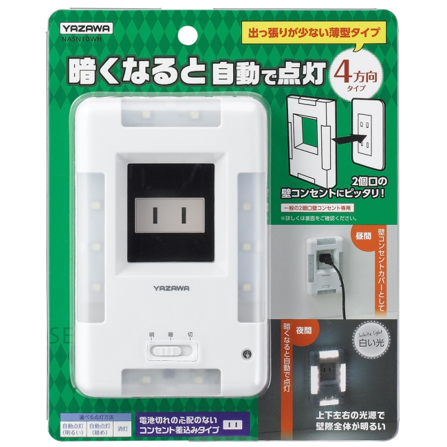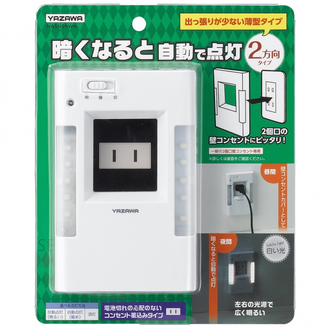 暗くなると自動で点灯し、コンセントの周囲を明るく照らすナイトライト(足元灯)を3種類発売しました。
