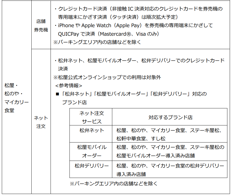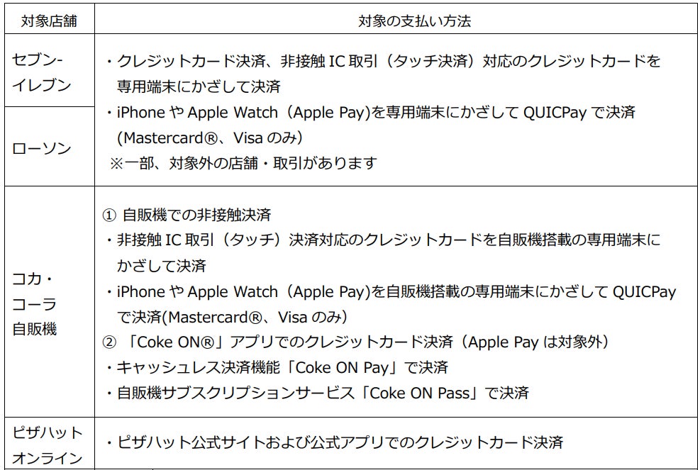 コカ・コーラ自販機(タッチ決済、QUICPay、Coke ON®)/ピザハットオンライン/松屋/松のや/