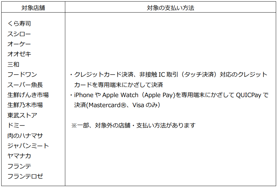 (※2)アメリカン・エキスプレス®ブランドの優遇対象は、スシロー、東武ストア、ヤマナカ、フランテ、フランテロゼのみ。