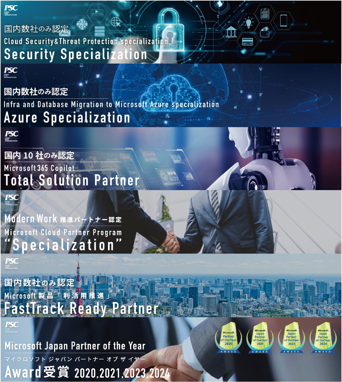 この度の株式会社ピーエスシー様の「Modern Work Specialization/Adoption and Change Management specialization」の認定を心よりお慶び申し上げます。