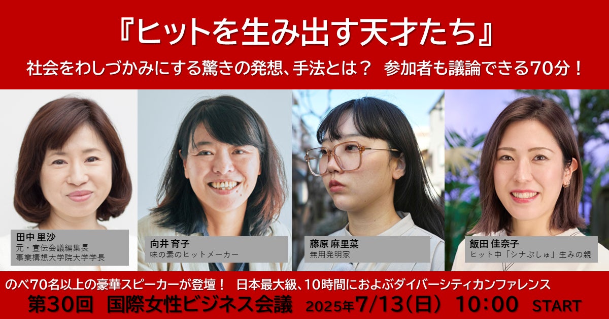 ▼「第30回 国際女性ビジネス会議」、7月13日(日)開催! 10時間の豪華プログラムから、「ヒットを生み出す天才たち」の打ち合わせをレポート