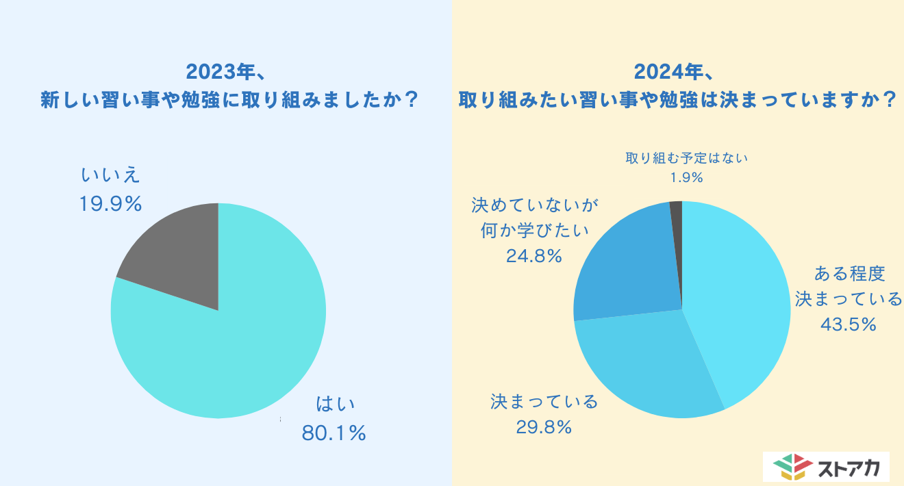 教えたいと学びたいをつなぐまなびのマーケット「ストアカ」を運営するストリートアカデミー株式会社(本社:東京都渋谷区 代表取締役社長CEO:藤本 崇)は、昨年に続き「2024年に挑戦したい大人の習い事」に関する調査を実施しました。