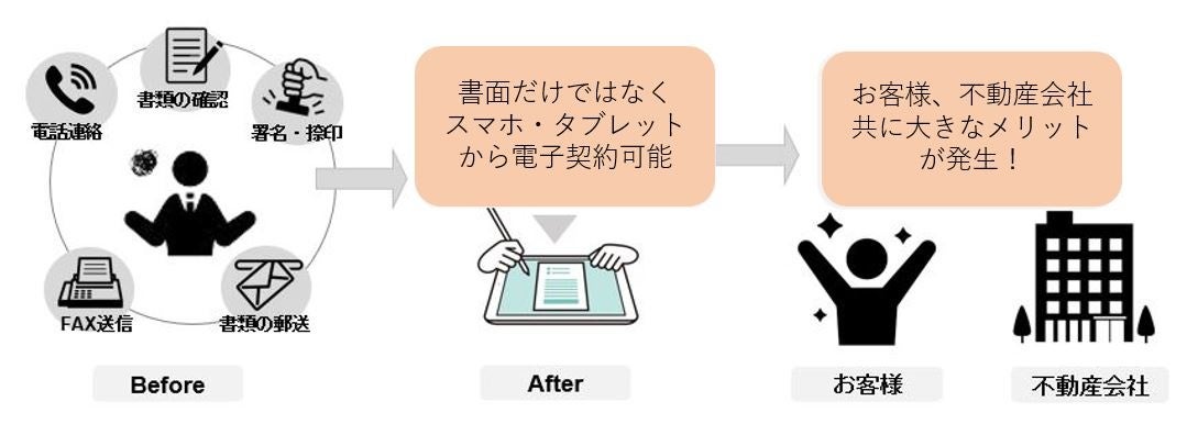 本システムを利用することにより、不動産契約に関するお客様の手間が大幅に軽減され、不動産業界における価値向上、お客様の顧客満足度の大きな向上に繋がるものと考えております。