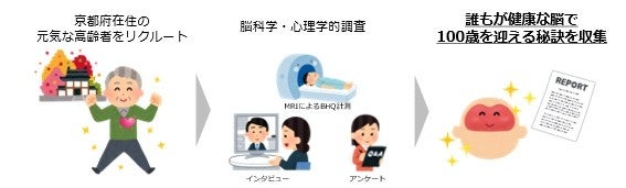 脳の健康に対するビジネスエコシステムを形成する上で、どのようにしたら脳の健康を維持できるのかを明らかにすることは、非常に重要な課題です。脳情報の可視化と制御による活力に溢れた生活の実現に向け実施された内閣府ImPACTプログラムでは、脳の健康を管理する国際標準指標「BHQ(Brain Healthcare Quotient)」が開発されました。過去のBHQ研究を通じて、超高齢者の中でも健康な脳を維持できている方が存在する可能性があることが示されました。このことから、100歳を超えても脳が健康な超高齢者の秘訣を探る研究プロジェクト「Century Brain Project」が開始されました。この度、京都府・(一社)京都スマートシティ推進協議会後援のもと、その第一弾を京都府で実施します。