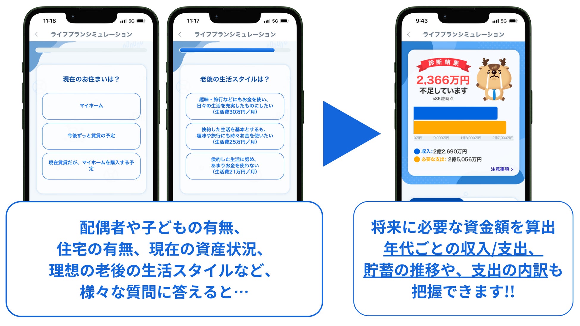 体験型投資学習アプリ「トウシカ」は、ユーザーの皆さまの将来設計をより一層サポートするため、新機能「ライフプランシミュレーション」をリリースいたしました。本機能は、ファイナンシャルプランナー監修のもとで開発しており、一人ひとりのライフステージに合わせた、より詳細かつ正確な将来設計が可能で、配偶者や子どもの有無、住宅の有無、現在の資産状況、理想の老後の生活スタイルなど、多岐にわたる質問を通して、将来に必要な資金額を算出します。通常、このような相談には費用が発生しますが、「トウシカ」であれば無料で、いつでも手軽に、調べることができます。