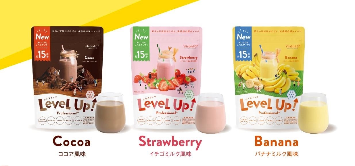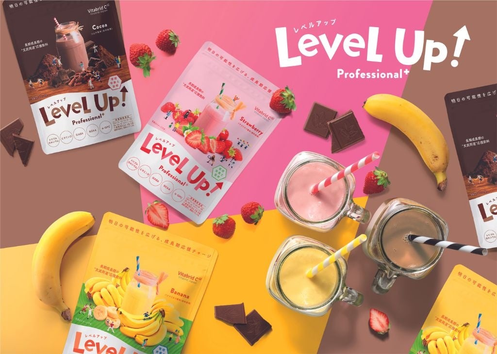 ビタブリッドジャパンの子供向け成長期サポート飲料「レベルアップ」は、子供の成長期に大きく役立つ栄養機能飲料です。成長期の身体づくりに欠かせないカルシウムやビタミン類をはじめ、バランスよく厳選された25種類の栄養素をたった一杯に凝縮し、スポーツも勉強も頑張るお子さまの“明日の可能性を広げる”ため、一歩上の食育をサポートします。