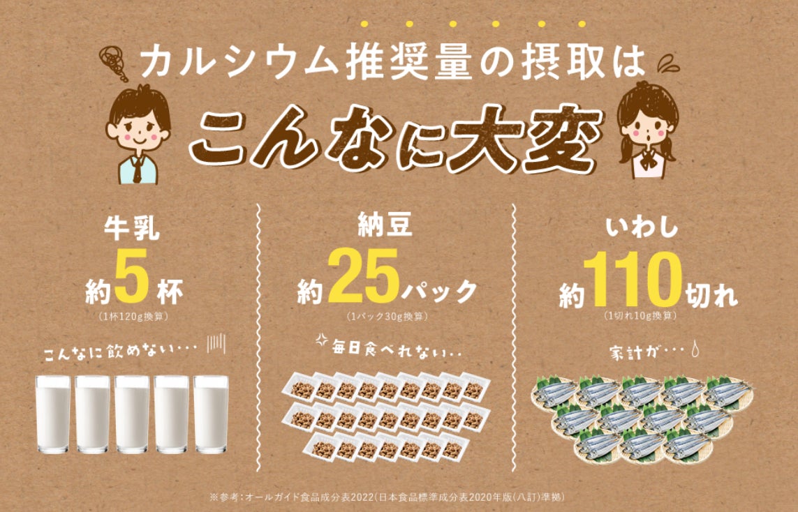 食事だけでは十分なカルシウムを摂ることが難しい現状が露わに。