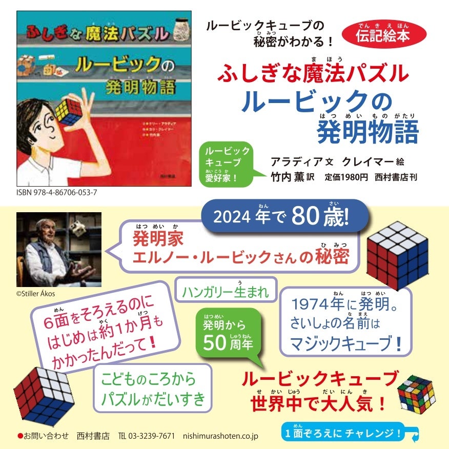 発明50周年!大人気パズル「ルービックキューブ」誕生秘話を描く伝記絵本『ふしぎな魔法パズル ルービックの発明物語』12/17発売!