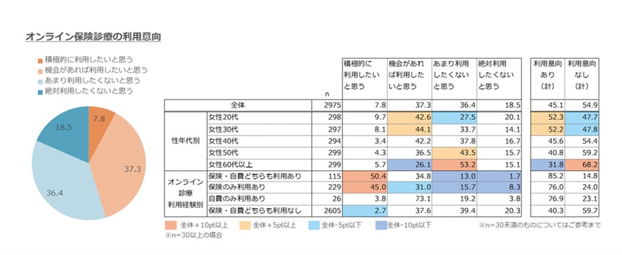 オンライン保険・自費での利用意向には違いが。自費に抵抗を感じる人が多い