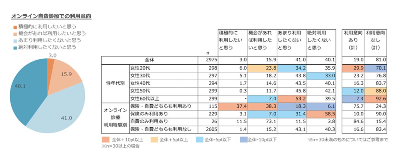 認知度は高いが利用意向は低い?女性のオンライン診療利用の実態