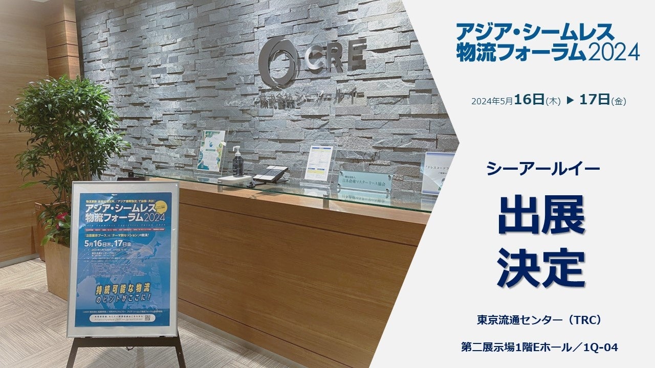株式会社シーアールイー(代表取締役社長/亀山忠秀 、本社/東京都港区、以下CRE)は、2024年5月16日(木)から17日(金)までの2日間、東京流通センターで開催される「アジア・シームレス物流フォーラム2024」に出展いたします。