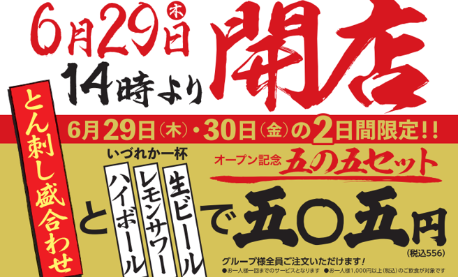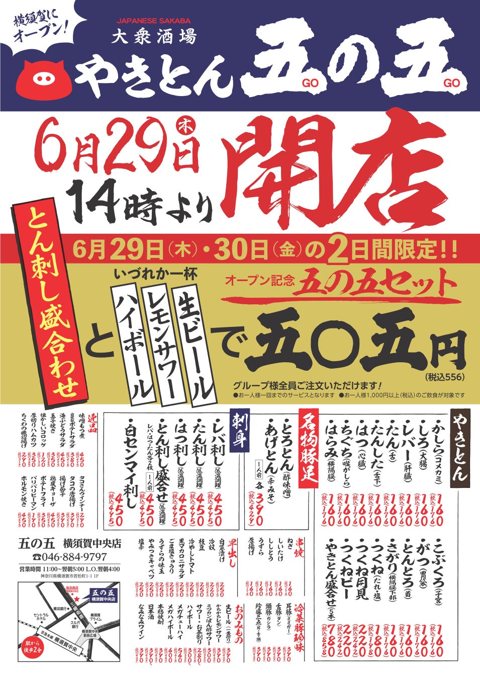 2023年6月29日(木)14:00 大衆酒場「五の五 横須賀中央店」オープン!