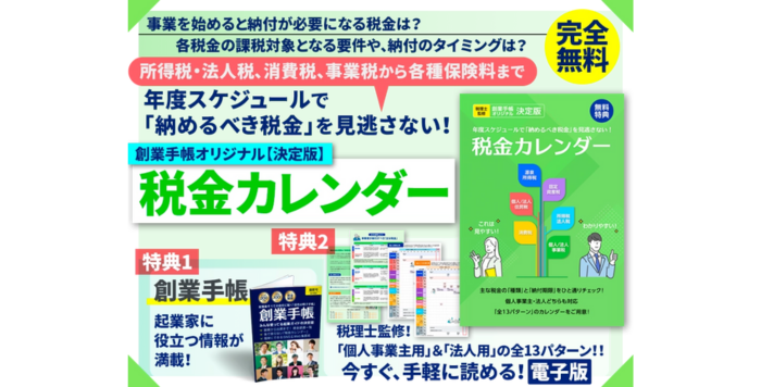 創業手帳が完全オリジナルの『税金カレンダー』を発行・無料でプレゼント