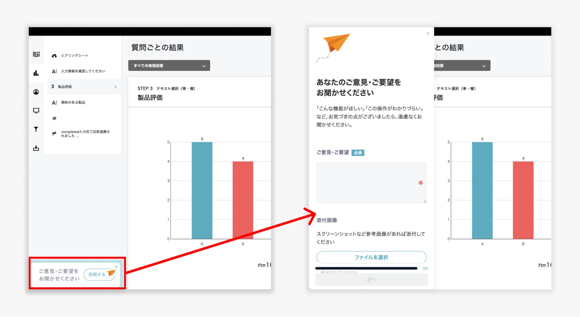 Ask OneではWebサイト上にポップアップを表示させ、サービスを利用している顧客が気軽にフィードバックを投稿することができるフォームを作成することができます。