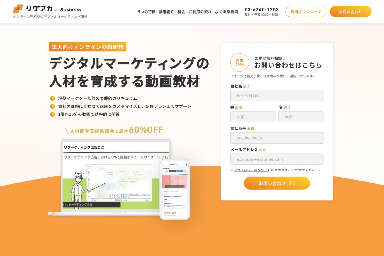 株式会社LIG、企業向けWebマーケティング人材育成サービス「リグアカ for Business」を開始