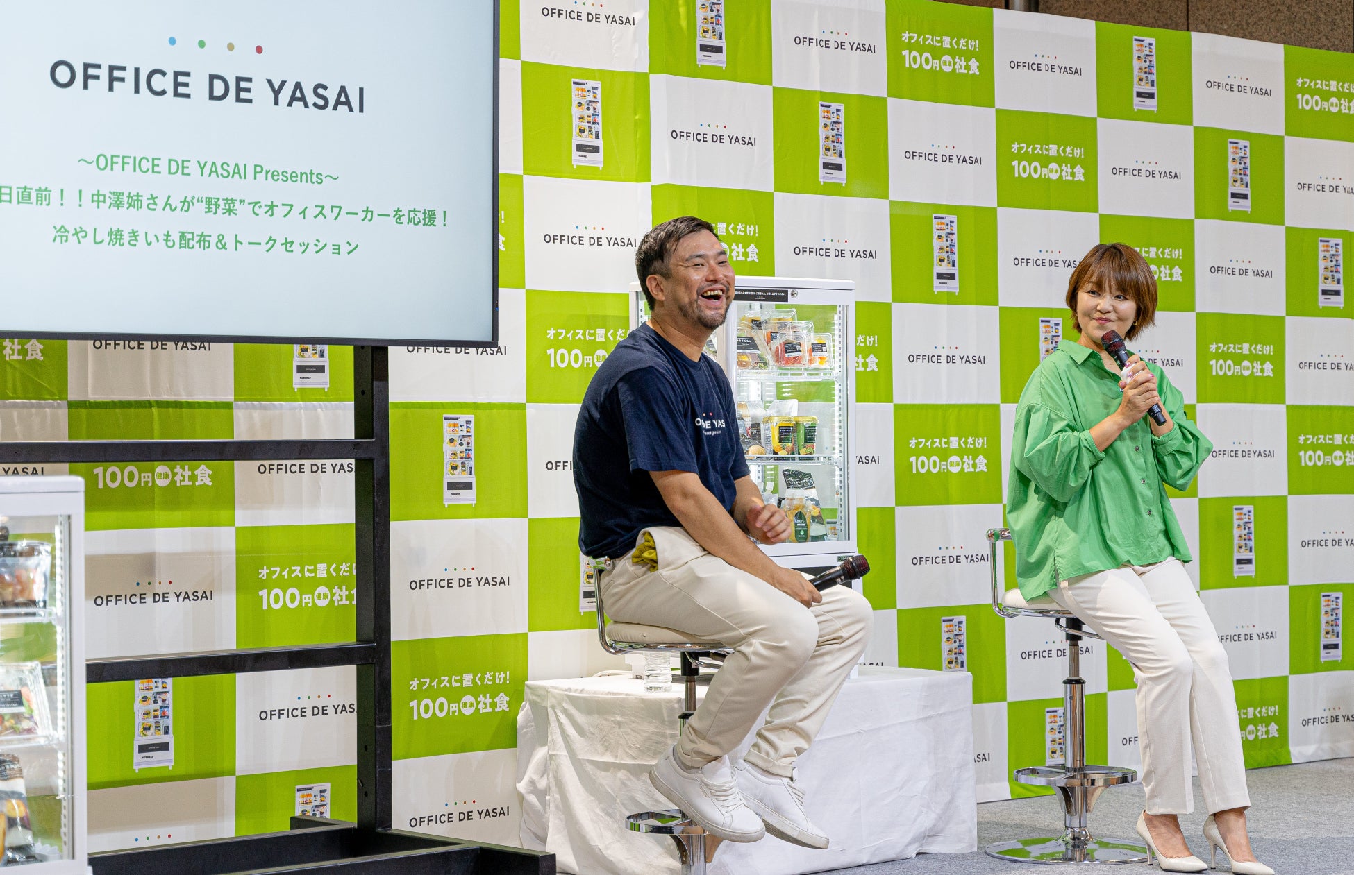 野菜の日(=8月31日)に向けて、2023年8月30日(水)、天神・ライオン広場にてトークセッションを開催いたしました。2022年10月、福岡県糟屋郡に製造・物流拠点を設けたOFFICE DE YASAIが、福岡県を拠点に活躍する中澤裕子さんをお招きし、福岡への想いや働く人の食・野菜に関するトークを繰り広げました。
